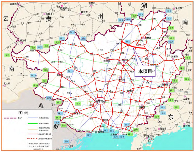 项目位于广西柳州市、桂林市境内,起于柳州市融安县浮石镇,与融水至从江公路一期工程融水至安太段衔接,终于桂林市阳朔县金宝乡,与G65包茂高速桂林至阳朔段相接,是《广西高速公路网规划(2018-2030年)》布局中1环12横13纵25联联2线的重要组成部分。项目的建成将打造成一条从贵州经广西至广东方向便捷的省际通道,填补完善了广西高速公路网在桂北大部分片区的空白,形成一条贵阳经从江、融安、永福、阳朔、平乐、昭平、苍梧至广东的高速公路。