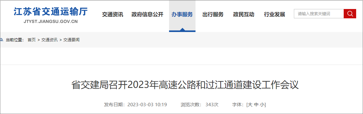 近日,江苏省交通工程建设局召开2023年高速公路和过江通道建设工作会议,明确2023年完成投资483.1亿元,全力打好交通重大项目建设攻坚战,全面完成年度工程建设管理各项任务,为全面推进中国式现代化江苏新实践、展现走在前、挑大梁、多作贡献责任担当提供坚强支撑。省交建局局长蒋振雄出席会议并讲话。