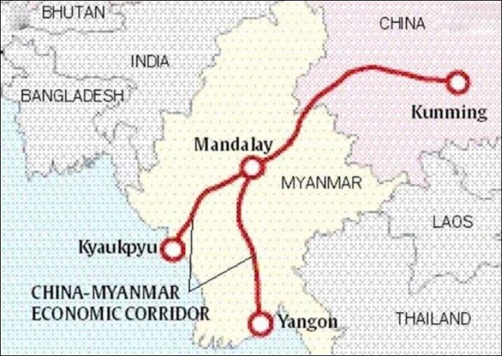 中缅经济走廊,连接昆明-曼德勒-皎漂镇/仰光,被称人字型经济走廊