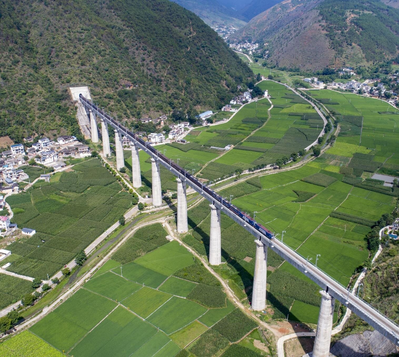 大瑞铁路大保段西山寺特大桥,该铁路开通运营,结束了云南省保山市不通铁路的历史