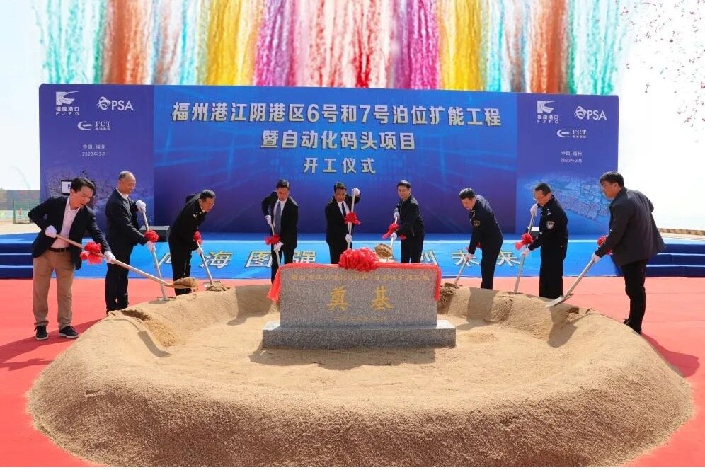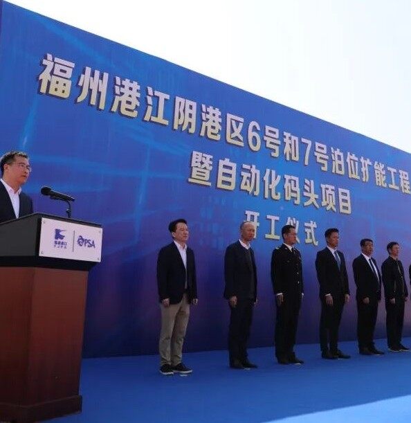 2023年3月8日,福州港江阴港区6号和7号泊位扩能工程暨自动化码头项目开工仪式,在江阴港区举行。这个项目是福州港首个20万吨级集装箱泊位项目,标志着福州港正式进入自动化、智能化、信息化发展的新时代,助力福州建设港口型国家物流枢纽。