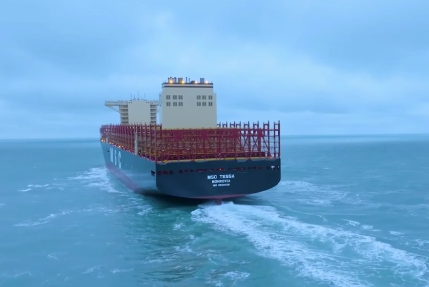 中国制造全球最大级别集装箱船新纪录在上海诞生。中国船舶集团旗下沪东中华联合中船贸易为地中海航运公司建造的24116TEU超大型集装箱船系列船首制船地中海泰萨(MSC TESSA)号,于3月9日命名交付。