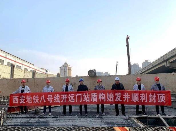 2023年3月6日,西安地铁八号线项目开远门站盾构始发井顺利封顶。该盾构始发井为地下三层,于2022年12月15日开始底板施工,春节期间不停工,历经82天完工,为盾构机从开远门站顺利始发提供了坚实的基础。