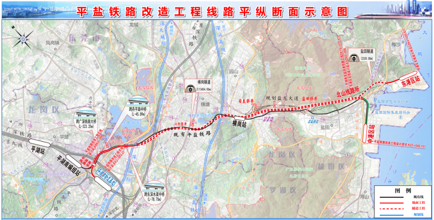 平湖南至盐田港铁路改造工程线路平纵断面示意图