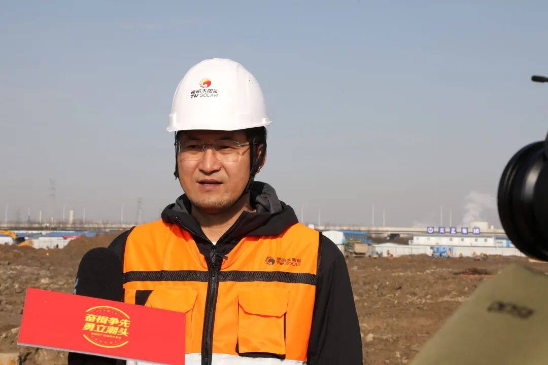 通威太阳能盐城有限公司工程部部长李松强介绍项目建设情况