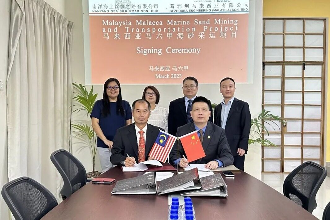 2023年3月14日,中国能建葛洲坝国际公司与马来西亚南洋海上丝绸之路有限公司签署马来西亚马六甲海砂采运现汇项目合同,实现马来西亚非电业务领域新的突破,此次成功签约是中国能建葛洲坝国际公司面对新形势抢抓新机遇,深入践行一带一路倡议加快促进业务转型升级的重要成果。
