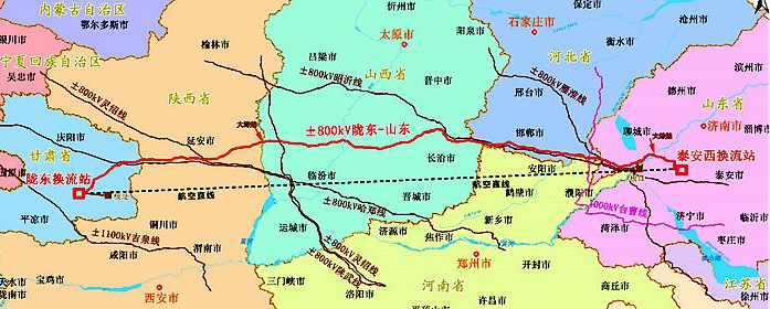 陇东-山东工程将甘肃陇东综合能源基地的风电、光伏、火电、储能电量打捆输送至山东,是中国首个风光火储一体化送电的特高压工程。送端在甘肃省庆阳市建设庆阳换流站,汇集陇东能源基地煤电和新能源,受端在山东省泰安市建设东平换流站,直流线路全长926公里,额定电压±800千伏,输送容量800万千瓦,动态投资202亿元。