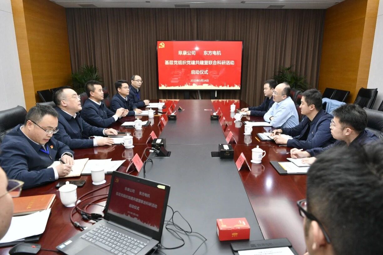 2023年3月14日,东方电机研发中心党委、电站服务事业部党总支、成套技术事业部党支部与新疆阜康抽水蓄能有限公司第五党支部在德阳联合举办发挥合力、共赢未来党建共建暨联合科研活动,深入学习宣传贯彻党的二十大精神,以互建促自建,巩固深化战略合作关系,推动实现党建强、企业强的双强目标。东方电机党委副书记、总经理鄢志勇,阜康公司党委书记、董事长严良平出席活动。