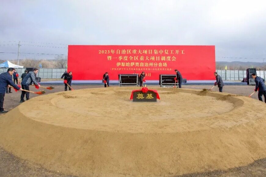 2023年3月17日上午,2023年自治区重大项目集中复工开工暨一季度全区重大项目调度会举行,伊犁哈萨克自治州分会场设在伊宁市苏拉宫工业园区。当天,伊宁市光伏绿电制氢源网荷储一体化项目开工建设。