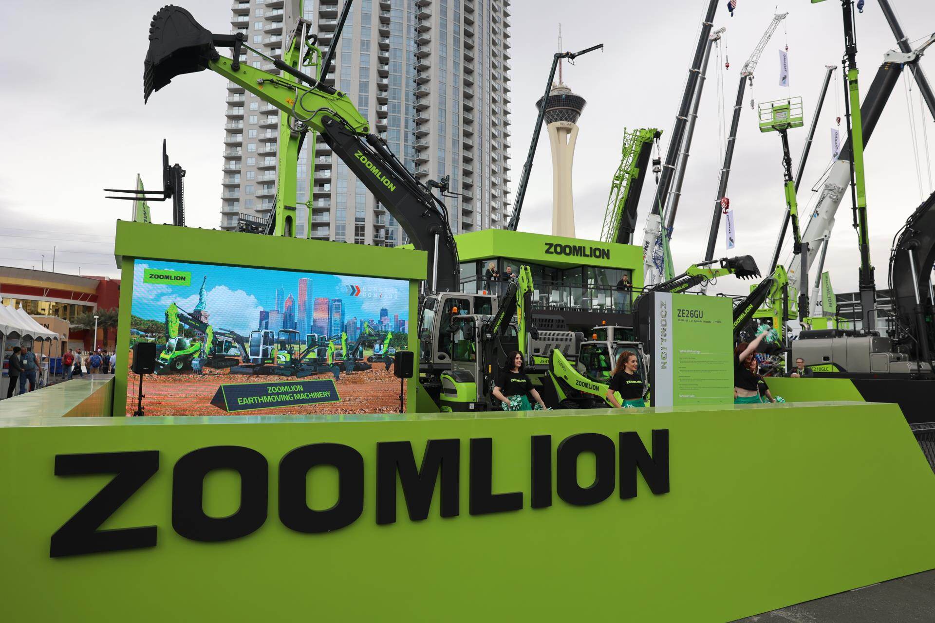 与上一届美国拉展相比,中联重科此次参展产品增加近60%。在F9615展位,是中联重科工程起重机械、建筑起重机械、混凝土机械、高空作业机械、土方机械、工业车辆、m-tec干混砂浆设备等7大类产品及零部件,凝聚硬核实力的产品、精彩的挖机投篮表演、活力的舞蹈,吸引着一批又一批的客商驻足体验、观看;展厅内,商务洽谈签约、产品发布、智能制造演示等活动轮番上演,精彩持续不停。
