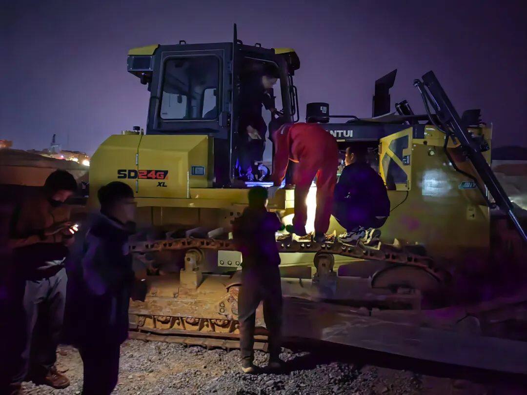Through a comprehensive investigation of the on-site equipment, the service team found out the current status of the on-site equipment in the shortest time. As a result, Shantui's expert team immediately contacted local service personnel, and quickly allocated various resources through Shantui's complete service system. During the waiting time, Shantui's expert team has been waiting at the customer's construction site, racing against time and working all night long. At the same time, in order to make every effort to ensure the smooth progress of the project construction, Shantui has set up a special service team for this project. Members, including experts and service personnel, are stationed at the construction site to provide customers with nanny services.
