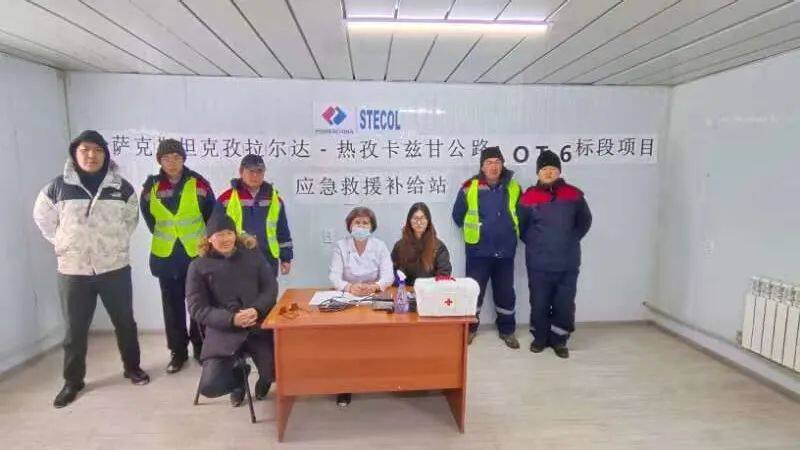 在哈萨克斯坦克,孜拉尔达-热兹卡兹甘公路上几乎没有任何人经过,周围孤立无援,近五百公里都是戈壁滩无人区。自从有了中国电建的项目部,这里却完全变了样,一座七彩营地成了戈壁无人区的应急救援补给站。