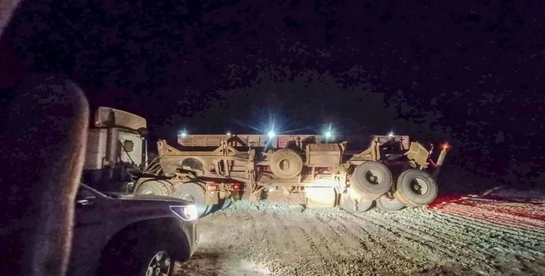 项目正在救援翻车的大卡车,救援工作从早上持续到晚上