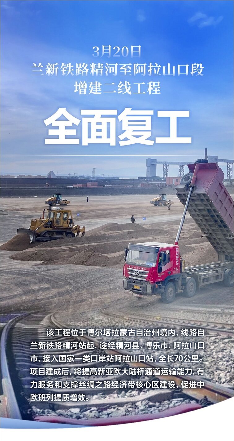 3月20日,兰新铁路精河至阿拉山口段增建二线工程全面复工