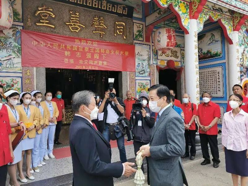 في الفترة من 15 إلى 18 مارس 2023 ، قام السفير هان تشيتشيانغ بزيارة سونغكلا وفوكيت بتايلاند ، وأجرى تبادلات متعمقة مع المسؤولين الحكوميين في البلدين حول العلاقات الصينية التايلاندية والتعاون الثنائي في الاقتصاد والتجارة والسياحة والتعليم والعلوم و التكنولوجيا ، وما إلى ذلك ، وزارت المدارس الصينية ذات الصلة ، وزارت وتعاطفت مع الصينيين المحليين المغتربين ، وفتشت المرافق السياحية ذات الصلة في الحكومتين ، وتعرفت على المزيد حول الوضع الأمني السياحي المحلي وخدمات الاستقبال للسياح الصينيين ، وعقدت مناقشة مع المعلمين والطلاب من أمير جامعة سونغكلا ، وعرض التنمية في الصين وشرط العلاقات الصينية التايلاندية. شارك القنصل العام وو دونغمي في سونغكلا وآخرون في الأنشطة المذكورة أعلاه.