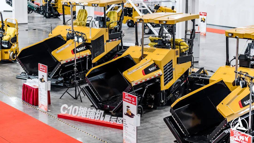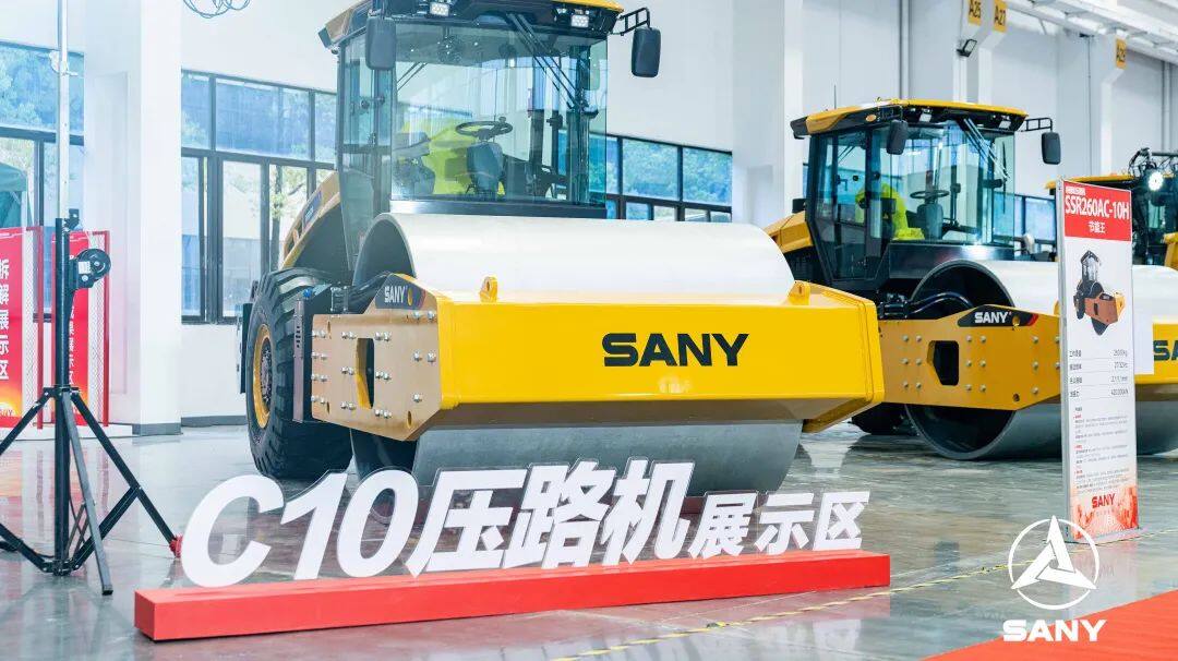 在产品展示区内,三一路机C10国四“惊鸿”系列设备造型轮廓线条流畅,涂装色彩沿用经典三一“路机黄”,一抹绛色为整机机身注入全新活力,全新造型贴合年轻化国潮审美;搭载三一道依茨国四发动机,在满足国四排放标准的同时,延续了国三发动机动力强劲、节能高效的优势;驾驶室全新升级落地窗式设计,视野更开阔,全面升级内饰,配置智慧大屏,尽显科技魅力。