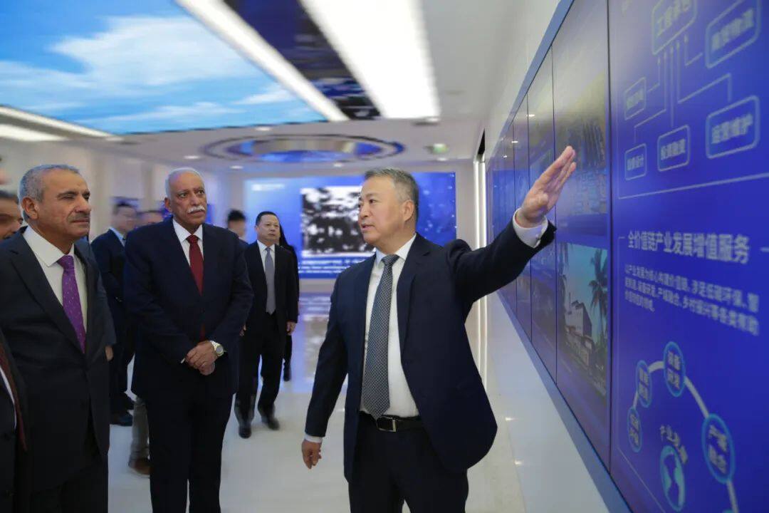 伊拉克电力部代表团一行参观了CMEC业务展厅。王博亲自向来宾介绍了CMEC的业务范围、经典成功项目案例、特色业务能力,以及在助力全球能源转型和履行社会责任方面所做的贡献。代表团成员参观后表示,对CMEC的业绩和实力有了更高的认识,对未来与CMEC的合作更加充满信心。
