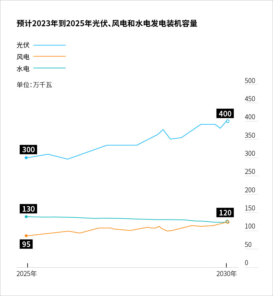 到2025年,光伏、风电和水电发电装机容量分别达到300万千瓦、95万千瓦、130万千瓦,光伏、风电和水电等清洁高效电力装机比例达30%以上;到2030年,光伏、风电、水电和抽水蓄能发电装机容量分别达到400万千瓦、120万千瓦、120万千瓦、120万千瓦。(转载请注明见道网www.seetao.com)见道网战略栏目编辑/许生鹏