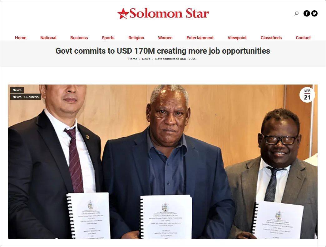 Kakara said that after winning the bid, China Civil Engineering Corporation won the contract to help the Solomon Islands government upgrade Honiara's old international port and two provincial ports. The Solomon Islands government said the port upgrade project is part of a $170 million road and wharf upgrade project funded by the Asian Development Bank, with China Civil Engineering Group winning the bid to build the road in 2022. According to a report by Agence France-Presse on the 22nd, according to the contract introduction of the Solomon Islands government, the Chinese company also won the contract to build a new terminal at the Solomon Islands Munda Airport in 2020.