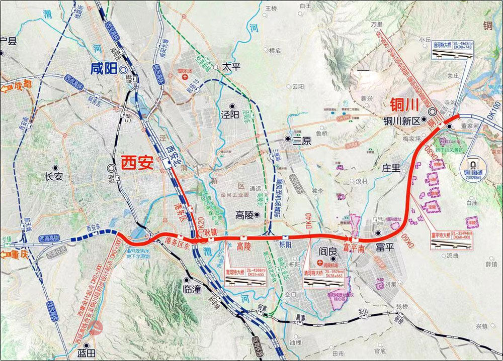 أنشئ حديثًا محطة Gaoling ومحطة Fuping South ومبنى محطة Tongchuan ومنصة ومشاريع أخرى ذات صلة في نطاق قسم Xi'an-Tongchuan (DK000 + 000 ~ DK88 + 310) من سكة حديد Xi'an-Yan'an.