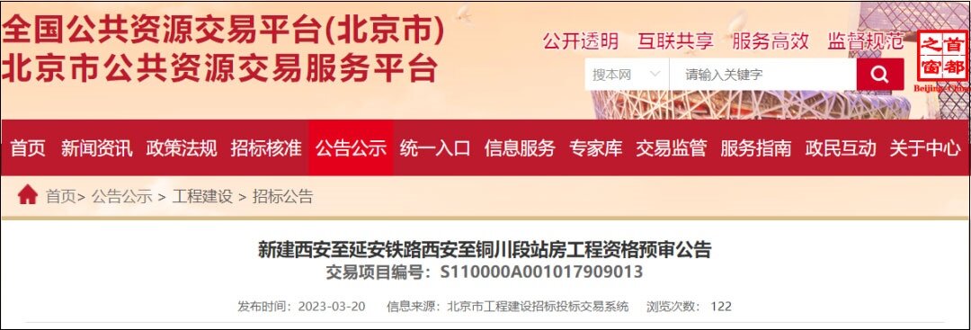 في 20 مارس 2023 ، تم إصدار "إعلان حول التأهيل المسبق لمناقصة التعاقد على أسعار وحدات البناء لمشروع بناء المحطة لقسم Xi'an-Tongchuan لسكة حديد Xi'an-Yan'an الجديدة". أوشك إنشاء محطات Gaoling و Fuping South و Tongchuan للسكك الحديدية عالية السرعة الغربية الممتدة على وشك البدء.