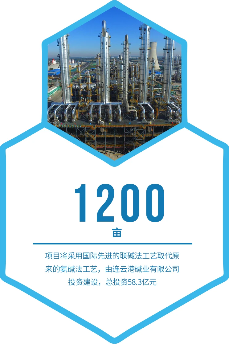 The relocation and upgrading project of Lianyungang Alkali Industry Co., Ltd. is invested and constructed by Lianyungang Alkali Industry Co., Ltd. The project construction land is about 1,200 mu, with a total investment of 5.83 billion yuan. The advanced combined-soda process will be used to replace the original ammonia-soda process.
