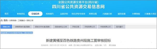 في 20 مارس 2023 ، تم الإعلان رسميًا عن إعلان المزايدة لمراجعة رسم البناء لقسم Guizhou من سكة حديد Huangtong-Baise المشيدة حديثًا. تمت الموافقة على المشروع من قبل اللجنة الوطنية للتنمية والإصلاح في أوائل مارس ومن المتوقع أن يبدأ البناء رسميًا خلال هذا العام.