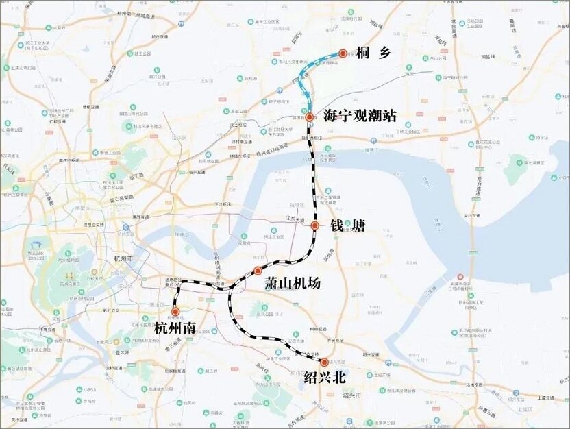 杭州机场高铁项目即将正式开工建设,计划工期4年,有望在2027年竣工通车。其中桐乡至海宁观潮站段由于受沪乍杭铁路引入桐乡站同步实施工程影响,将延迟开工。