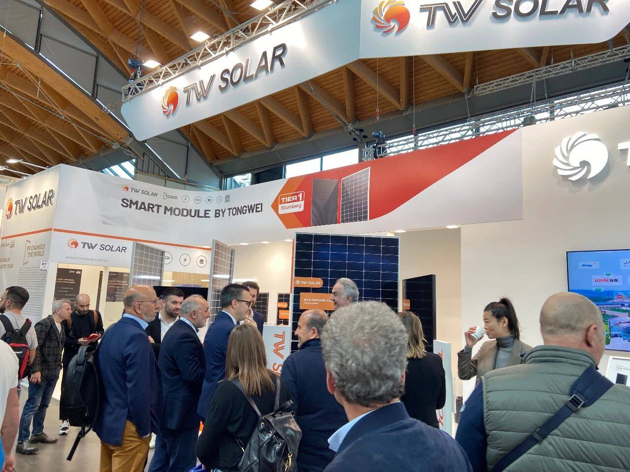 作为欧洲重要的光伏市场之一,意大利有着稳定的光伏电力需求。意大利政府计划于2025年淘汰煤电,2030年将可再生能源发电量占比提高到55%。作为中国乃至全球光伏新能源产业发展的重要参与者和主要推动力量的通威,多年以来,依托强劲和完善的产业链,目前组件产品已远销海外40多个国家和地区,赢得了国内、国际市场的高度认可。展会作为交流、学习、推广的重要手段,通威从不会缺席,未来通威仍将持续增强产品科技水平,积极参与展会,让越来越多的国家看到高效有质的通威智造与通威方案,助力全球新能源产业发展!(转载请注明见道网www.seetao.com)见道网工程栏目编辑/何玉蓉
