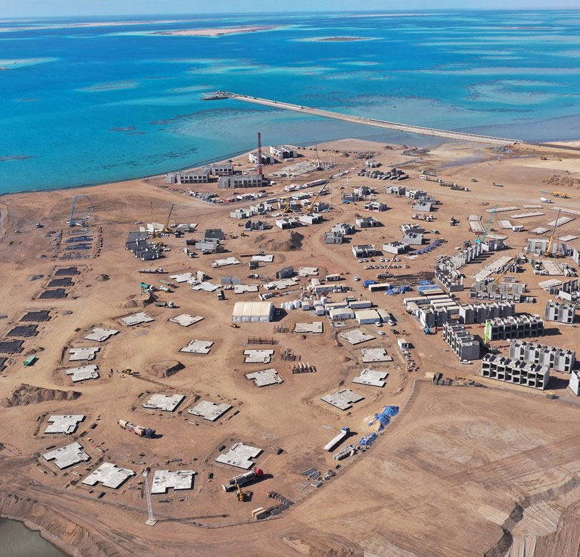 红海新城项目位于沙特西部的塔布克省,占地2.8万平方公里,是沙特2030愿景中的一项重点工程,被称为是新一代的城市。新城建设的一大亮点就是未来电力供应将全部来自清洁能源,而这里的五大电站全部由中国企业负责施工。