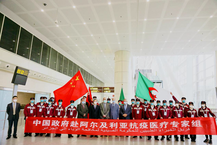 2022年5月,中国政府赴阿尔及利亚抗疫医疗专家组抵达阿尔及尔,同阿共战疫情