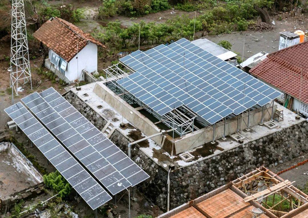 印度尼西亚爪哇岛的旅游胜地日惹的一个小型光伏电站,该电站是一个风、光、油混合发电项目的组成部分