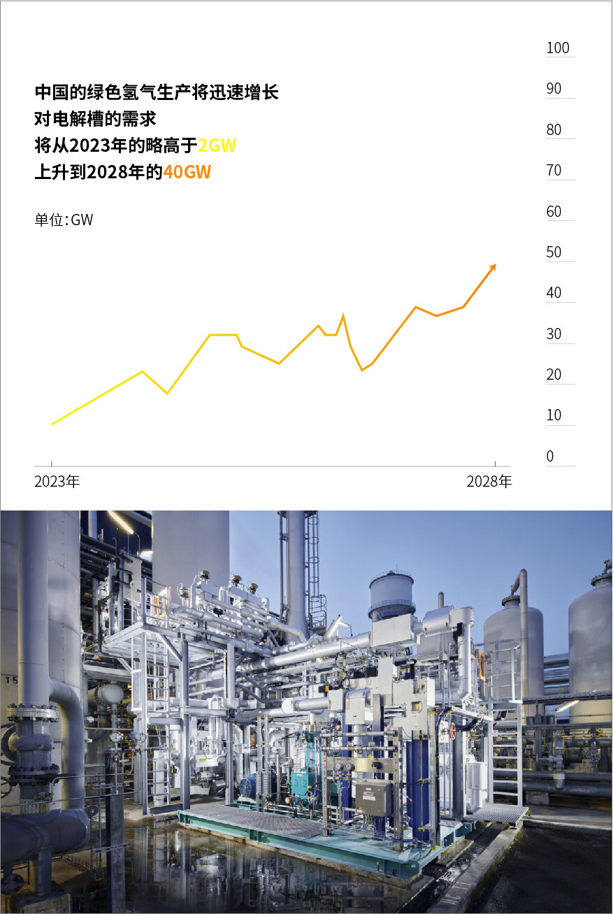 近日,根据金融机构中金公司的一份报告,中国的绿色氢气生产将迅速增长,对电解槽的需求将从2023年的略高于2GW上升到2028年的40GW。报告中称,由于外国电解槽的成本是中国电解槽的三到四倍,因此也有很大的出口潜力,中国制造商也有望在不久的将来在欧洲和美国销售低成本电解设备。