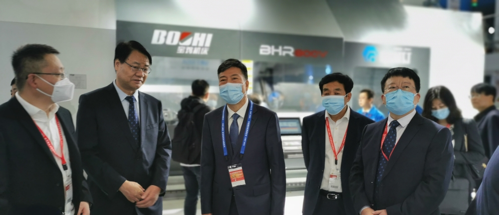 展会首日,教育部原部长、中国工程院院士周济,国务院派驻国有重点大型企业监事会原主席贾成炳,中国机械工业联合会会长徐念沙,中国机床工具工业协会会长毛予锋,通用技术集团董事长、党组书记于旭波等莅临集团展位。集团党委书记、董事长严鉴铂,集团党委副书记、总裁李强等分别介绍集团智能机床系列产品相关情况。