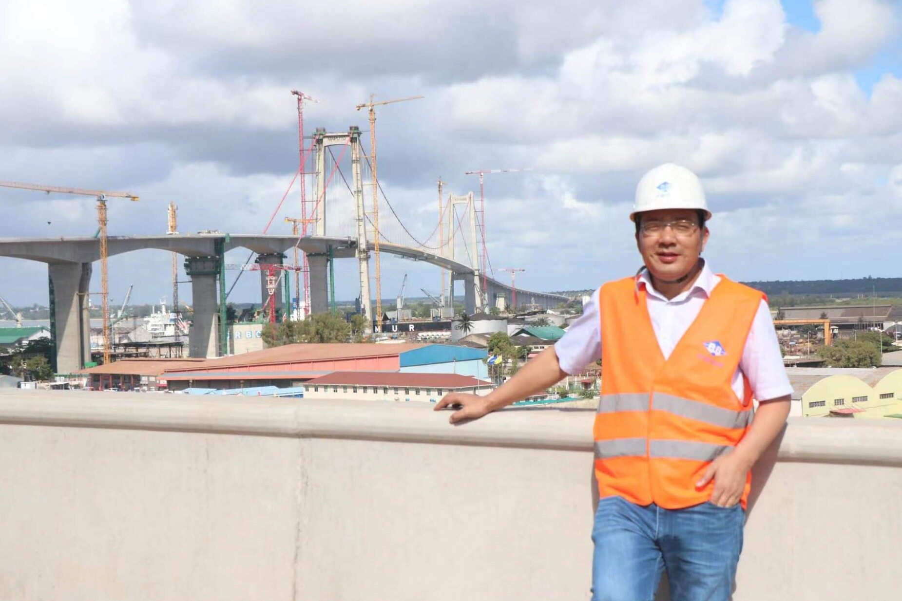 白鹏宇:大桥在施工期间聘用当地劳务人员5000~8000左右,很多都是我们在培养的,有很多上过学的,比如中国留学的,或者是当地技校出来,包括还有很多大学老师也在这,做人事管理。我们推行这种属地化,当地人去这个作业,对我们这种成本上也可以控制,另外一个能多促进当地人这种就业。这个项目上建完以后,给他们培养了大量的实验员、测量员、焊工、驾驶员,我们根据不同人的技术水平、管理水平不一样,项目做完了以后对他们都有个评价,最后就是拿着我们的推荐信去别的公司找工作非常容易。很多他们在学校学不到的东西在这个大桥这个项目上学到了,他们也说一个项目就像一座大学一样,把他们技能培养出来以后,有利于他们以后在社会上去再就业。