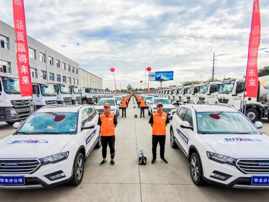 近日,山西地区多个工地的搅拌站内,迎来了数百台徐工搅拌车。在交付现场,数百台徐工V7系列轻量化搅拌车一字排开,气势磅礴,助力当地客户快速高效复工,成为一道靓丽的风景线。