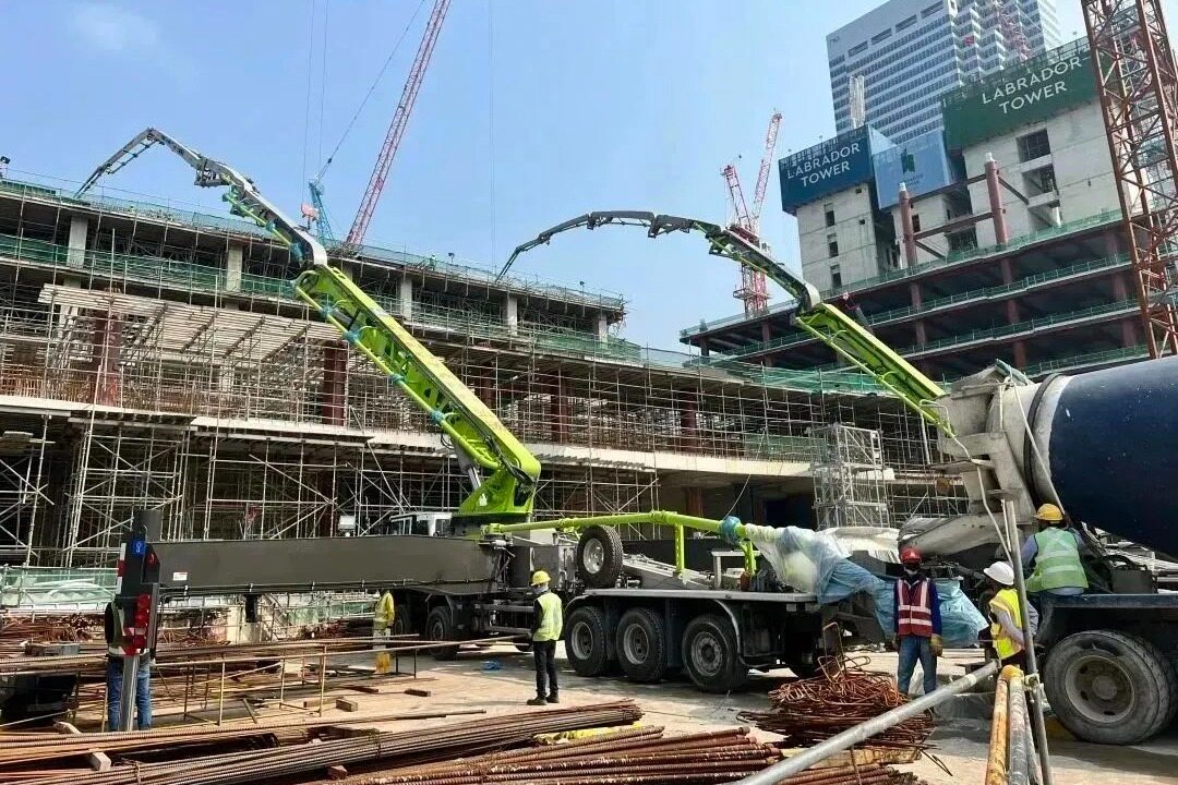 泵车、搅拌车、拖泵、车载泵等混凝土设备也刷屏海外建设项目。在新加坡巴实潘江港,中联重科多个米段的泵车组团作业,其中70米泵车创下了国内出口新加坡最长臂架泵车纪录。在新加坡这一标杆市场,我们出口的新泵车紧跟客户需求进行本地化调整,深受好评,在当地新泵车市场占比已超60%。中联重科相关负责人介绍说。