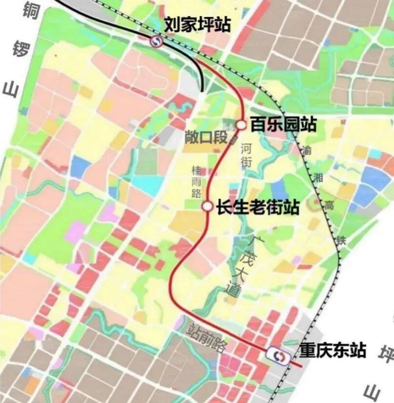 地铁6号线东延伸段工程位于南岸区茶园组团,线路起自重庆东站,止于既有刘家坪站,全长6.79公里。全线设车站4座:新建2座地下车站和1座高架站,分别为重庆东站、长生老街站(原长生路站)、百乐园站,改造1座高架车站,为既有刘家坪站;其中换乘站两座,重庆东站与规划中的8号线和24、27号线换乘,刘家坪站与规划中的20号线换乘。