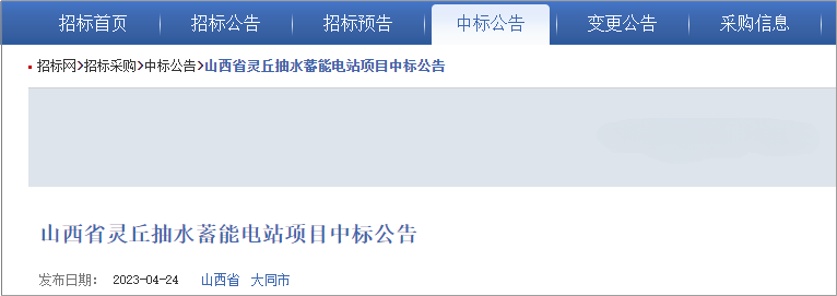 2023年4月24日,见道网记者从陕西省公共资源交易平台了解到,山西省灵丘抽水蓄能电站项目中标结果公示已发布,该项目由中国铁建投资集团、中铁十二局集团等8家央企组成的联合体中标。