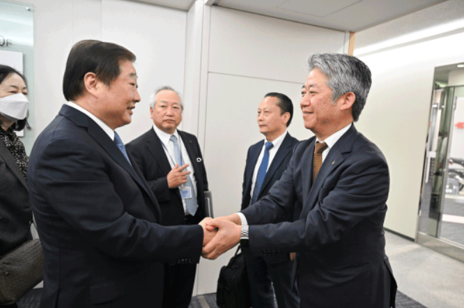 2023年4月25日,日本川崎重工与中国山东重工在日本东京川崎本社举行座谈会,双方就进一步扩展战略合作领域达成共识。山东重工集团董事长谭旭光、川崎重工社长桥本康彦参加活动。