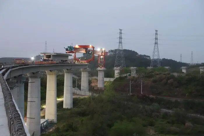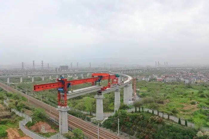 杭衢铁路上跨衢九铁路箱梁架设是全线关键性节点工程。工程施工需在400米小曲线半径、大坡道条件下上跨既有线架设单线箱梁,且必须在封锁时间内完成架桥机过孔、喂梁、架梁、支座灌浆等一系列工作,施工难度系数大、安全防范风险高,在国内高铁建设中尚属首次。