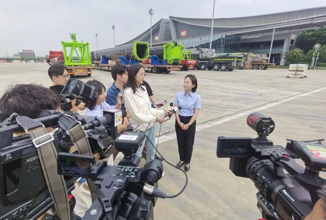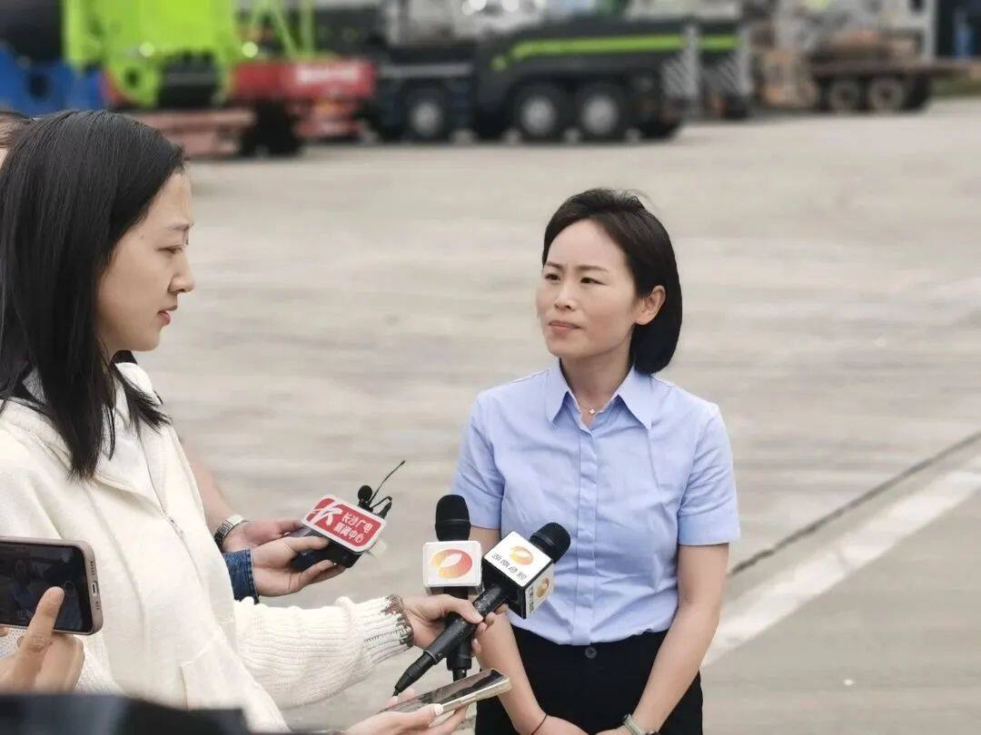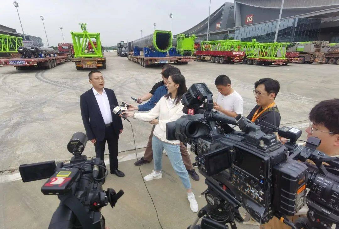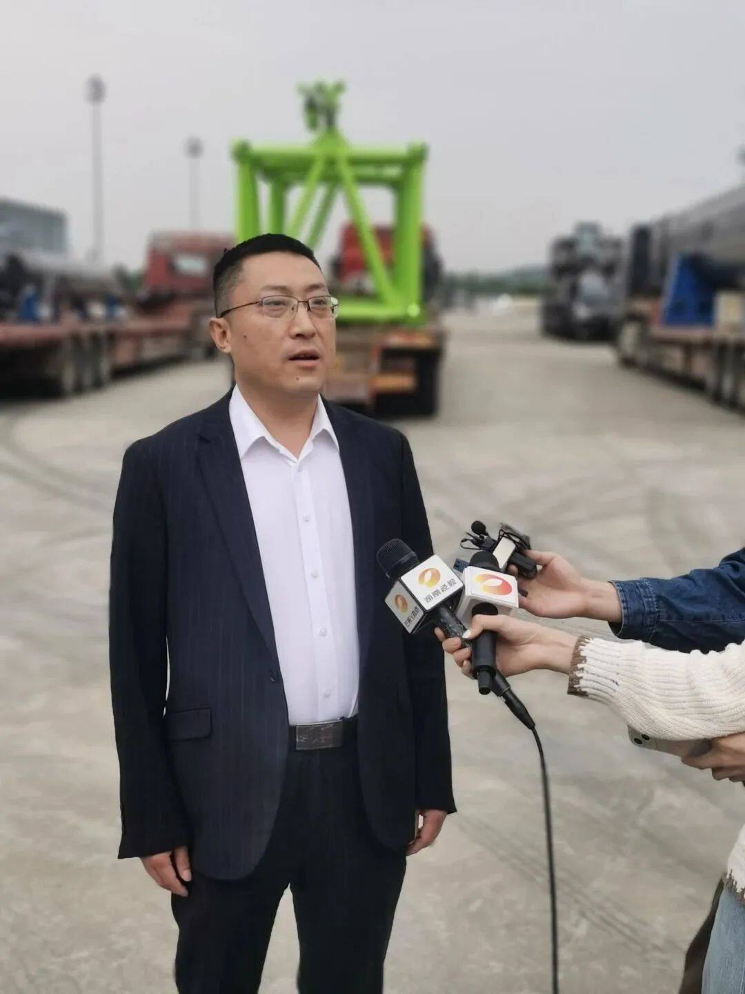 Jiang Dongdong, director of the Large Tonnage Research Institute of Zoomlion Engineering Crane Company R&D Center, accepts media interviews