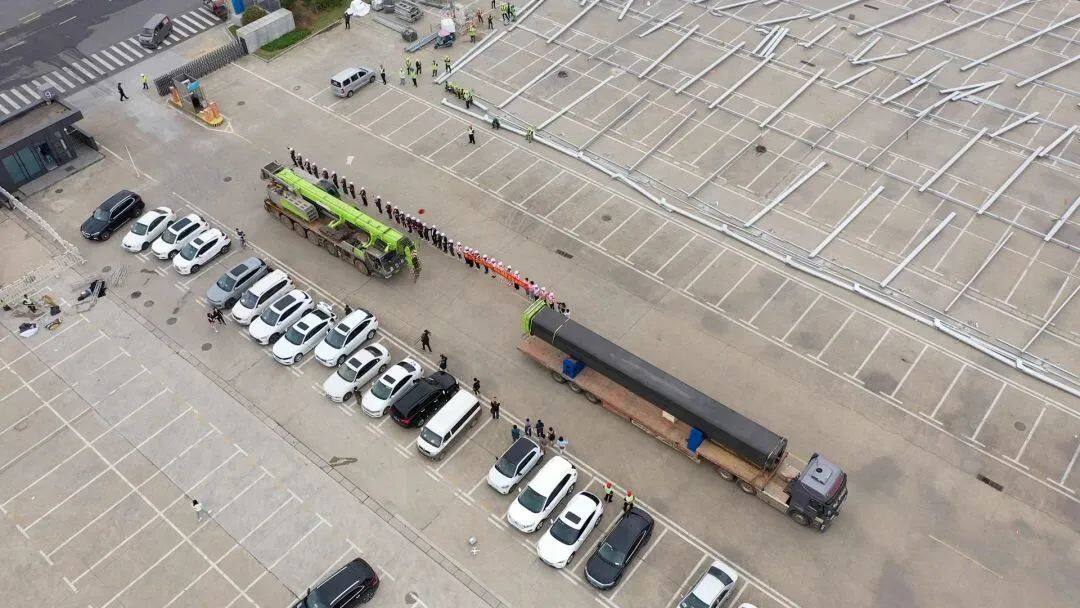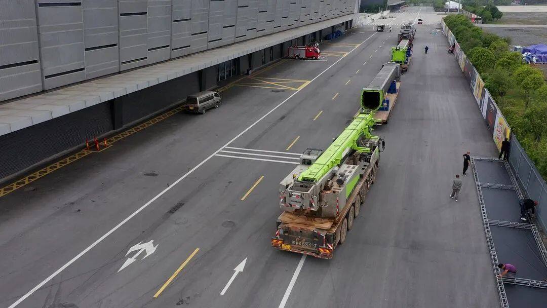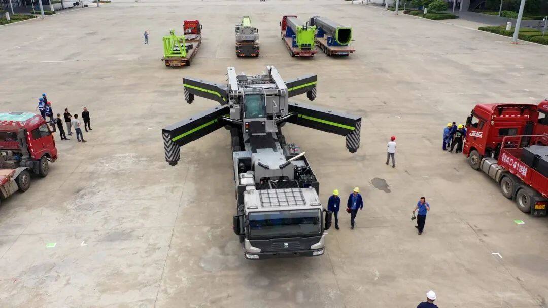 At 8:38 a.m. on May 2, 2023, more than ten large trucks loaded with Zoomlion's new generation ZAT24000H all-terrain cranes drove into the square of Changsha International Convention and Exhibition Center. The large-scale exhibiting equipment is also one of the tallest, largest and most eye-catching exhibiting equipment in this year's CICEE.