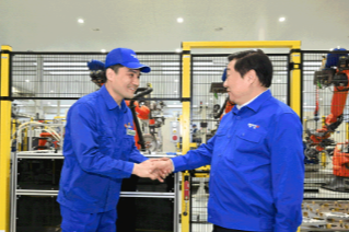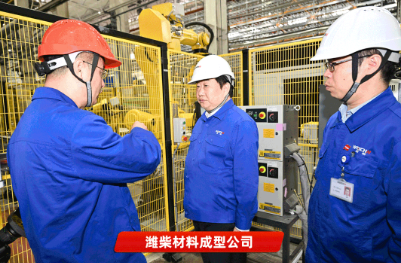 Later, Tan Xuguang went to Weichai High-end Heavy vehicle engine Intelligent Manufacturing Factory and Weichai Material Molding Company to visit the front-line employees who were working overtime during the "May Day" Labor Day and communicated with artisans and workers on site.