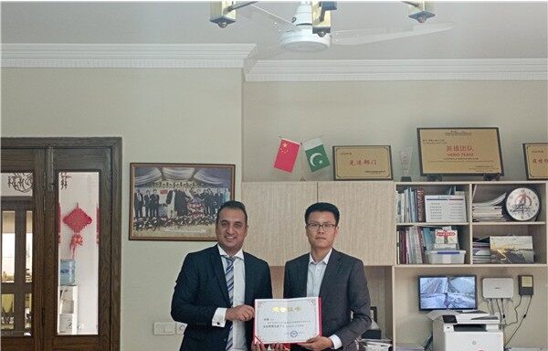 2022年2月,巴基斯坦总理青年事务办公室副司长穆罕默德·阿里·马利克(左二)参观考察卡西姆电站项目,与企业商讨青年事务合作计划