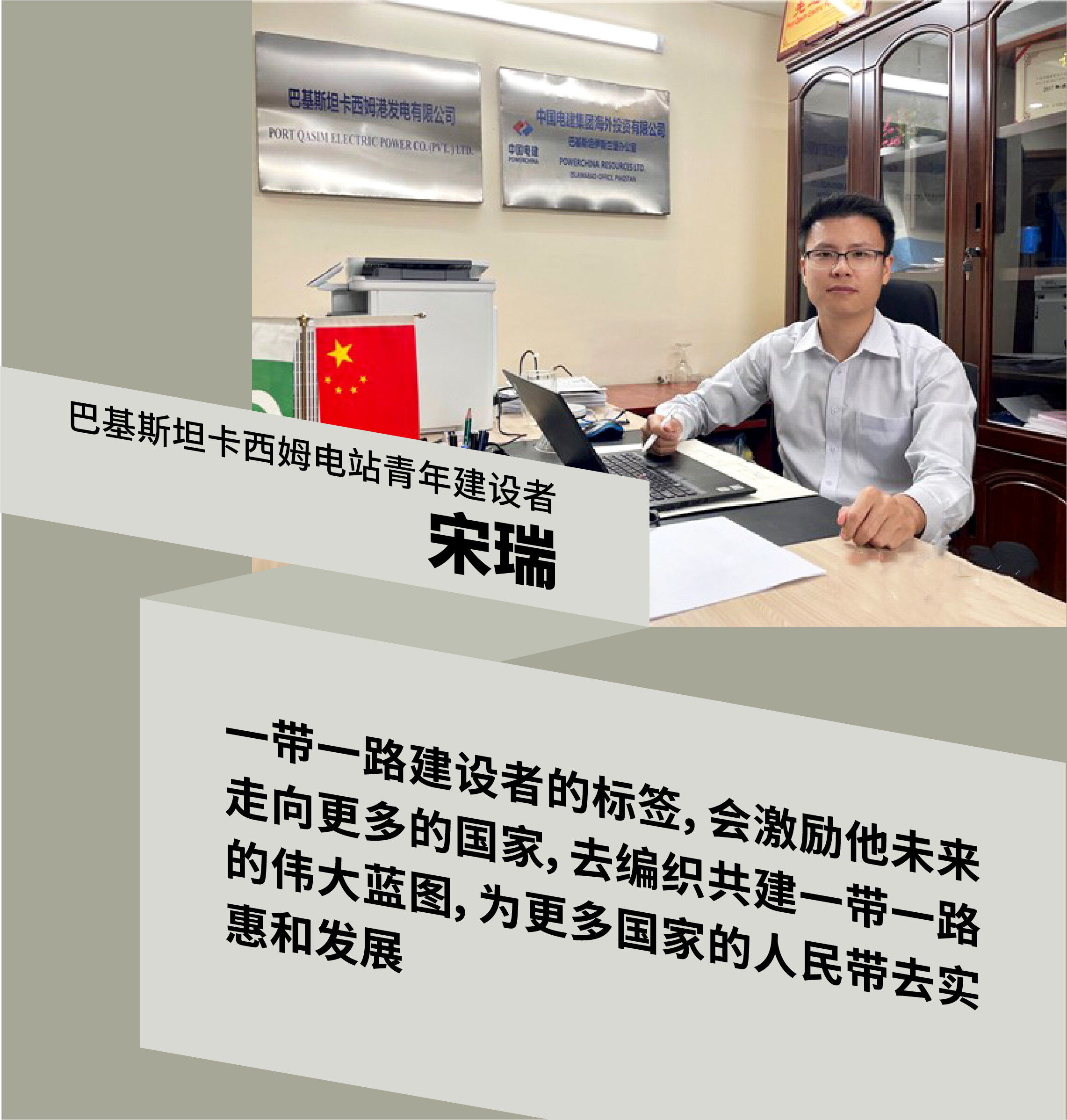 宋瑞是卡西姆电站办副主任,负责电站电价核定、股东合作等多项工作。在来巴基斯坦常驻之前,宋瑞曾设想过自己在海外的工作和生活,也曾制定了小小的奋斗目标。来巴基斯坦之前的两年他在电建海投公司投资部门工作,电建海投的重点定位之一就是在一带一路的伟大蓝图下做海外能源项目开发工作,因此在来巴基斯坦之前,他就已经做好了准备到项目一线,到一带一路建设的最前线奉献自己的青春力量,同时也希望自己做一个友好使者,尽管力量微弱,但也期盼着能够通过自己的工作增进两国之间的友谊。