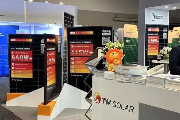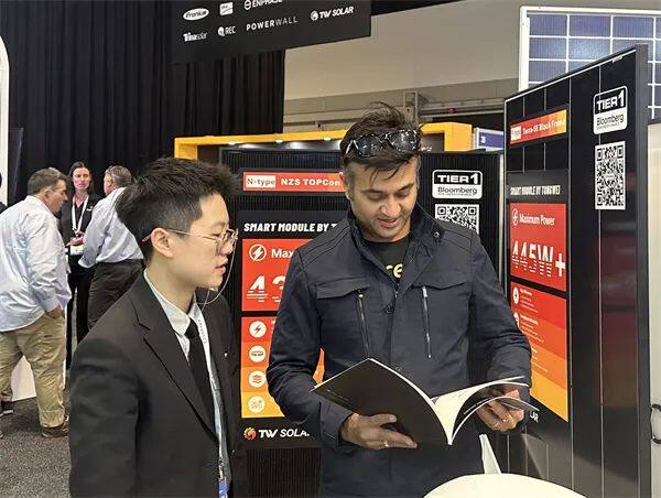 在展会现场,络绎不绝的观众前来通威展台参观。通威海外团队从光伏产业一体化布局到行业可持续发展战略,向观众详细介绍通威在光伏研发应用、智能制造等方面的实力。通威在本届澳大利亚展会中集中展示的7款组件产品,具备高发电量、低度电成本、高可靠性以及超低衰减等优势性能,包括全方位覆盖市场需求的半片组件产品,以及具备全柔性、低铅型、环境友好型等优势的叠瓦Terra系列组件产品。其中,通威N型组件采用TNC技术,广泛适用于户用、工商业及地面电站。该系列产品在此次展会中受到了许多参展观众的青睐,引得大量观众驻足并与通威组件团队交流。