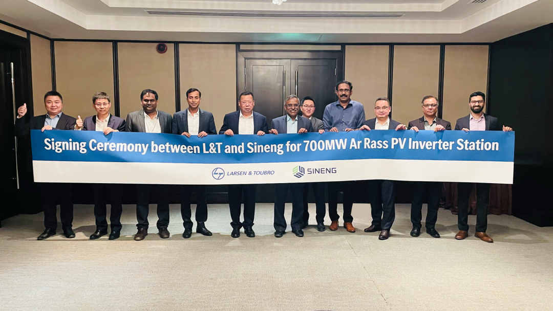近日,上能电气与Larsen & Toubro签署沙特700 MW Ar Rass光伏项目逆变设备供货协议,该项目是迄今为止作为沙特阿拉伯国家可再生能源计划进行招标的最大光伏项目之一,也是上能电气持续深耕中东市场的又一重大成绩。全面投运后将为沙特阿拉伯中部地区约13.2万户家庭提供绿色电能,助力中东加速能源低碳转型和2030愿景实现。
