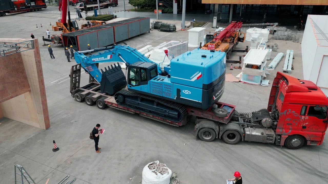 5月9日,入夏的长沙天空中的太阳愈发火辣,顶着烈日,国内最大的矿山装备服务企业之一的诺浩集团带来的三台矿山机械设备驶入长沙国际会展中心,引人注目的是它们都披着清凉十足的蓝色涂装,入场便为为火热的第三届长沙国际工程机械展布展现场带来一抹清凉。
