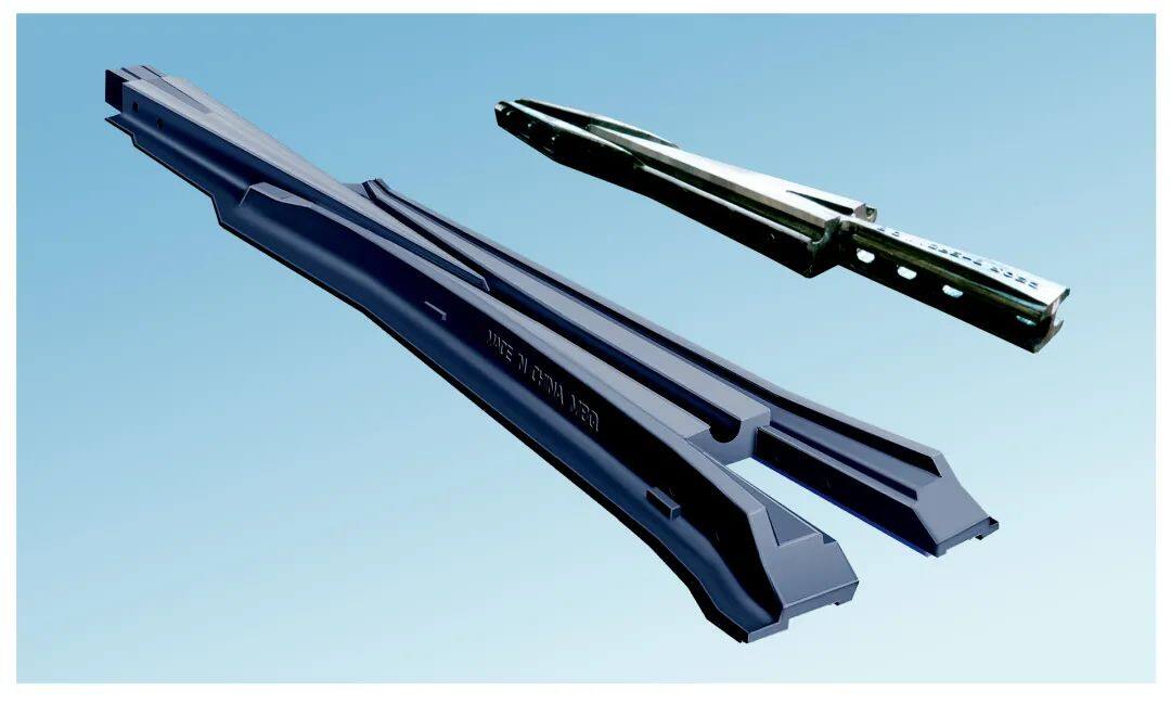 The third-generation high-manganese steel composite frog is a new generation of high-manganese steel frog independently developed by China Railway Baoqiao. The key core components are made of high-strength, high-density high-manganese steel independently developed by China Railway Baoqiao, which has high toughness and plasticity. And excellent wear resistance, impact resistance and other advantages, the key technology is at the international leading level.